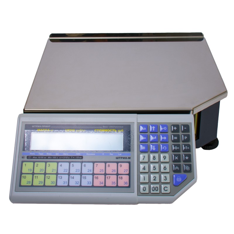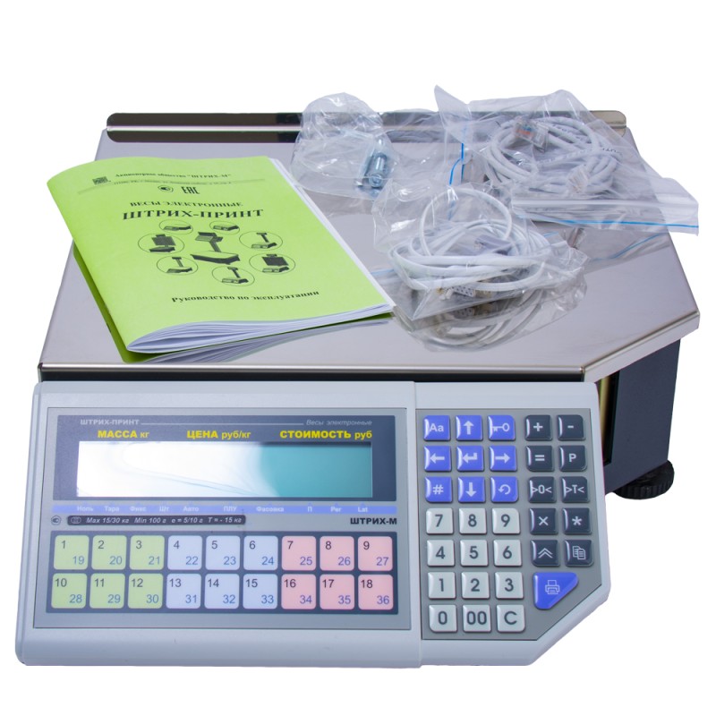 Весы оснащены функциональной клавиатурой на 50 кнопок, включая 18 клавиш быстрого доступа, позволяющих оперативно вызывать до 36 наиболее востребованных товаров. Двухстрочный LCD-дисплей (2×22 символа) отображает всю необходимую информацию: массу, цену, итоговую стоимость, наименование товара, а также текущие режимы работы.