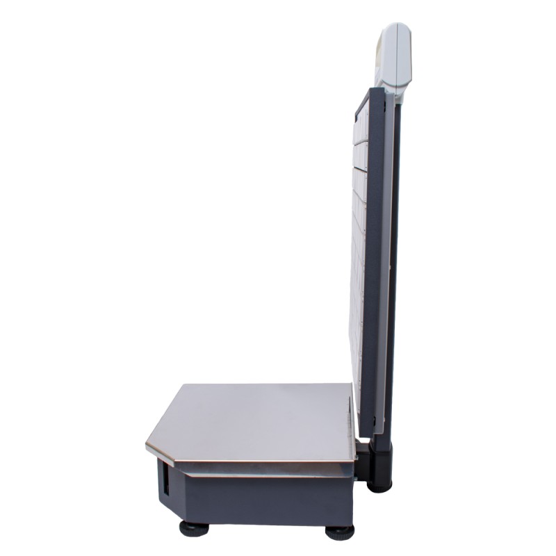 Для отображения информации предусмотрен двухсторонний LCD-дисплей с двумя строками по 22 символа. Он одновременно информирует покупателя и продавца, отображая массу, цену за единицу, итоговую стоимость, наименование товара и текущие режимы работы устройства.