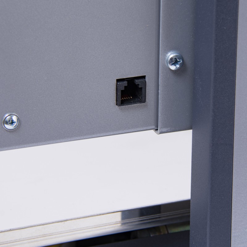 Стойка дисплея изготовлена из легкого и прочного алюминиевого профиля толщиной 2 мм, обеспечивая надежность конструкции при ежедневной эксплуатации.